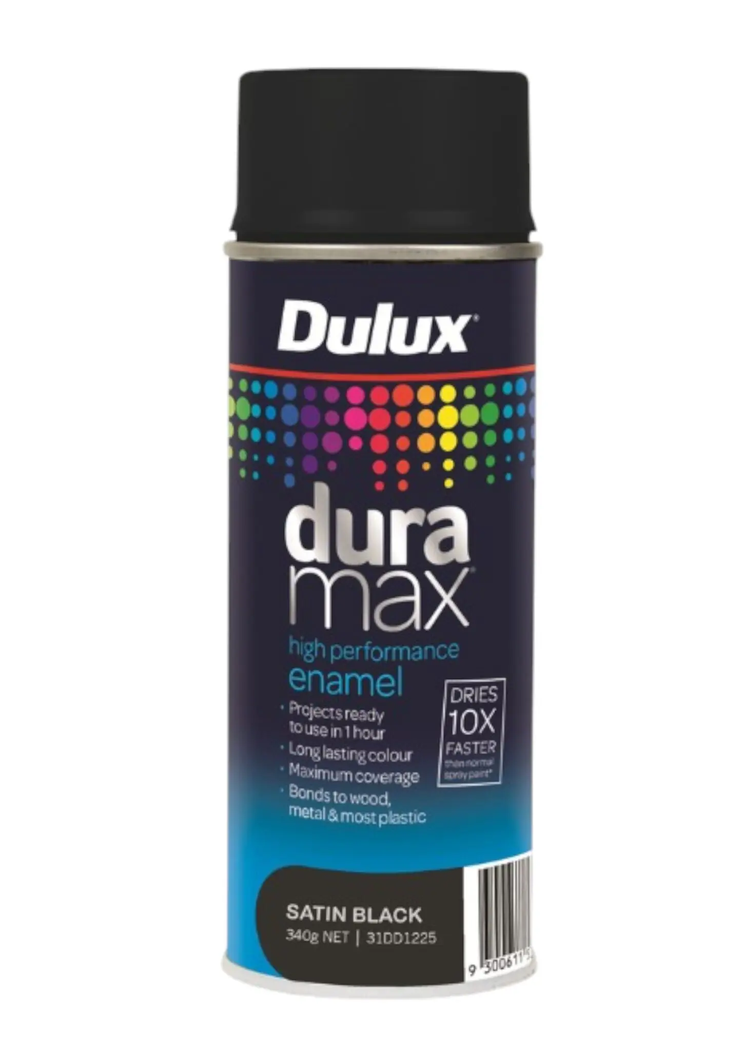 Home | Shop | Paint & Accessories | Spray Paint & Stain | Dulux Duramax Satin Black 300g
