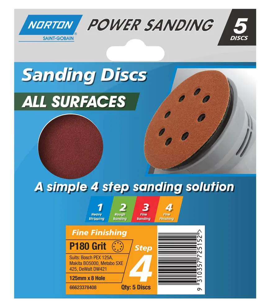 Home | Shop | Hand & Powertools | Sandpaper | Sanding Disc 125mm Speedgrip P180 Pk5